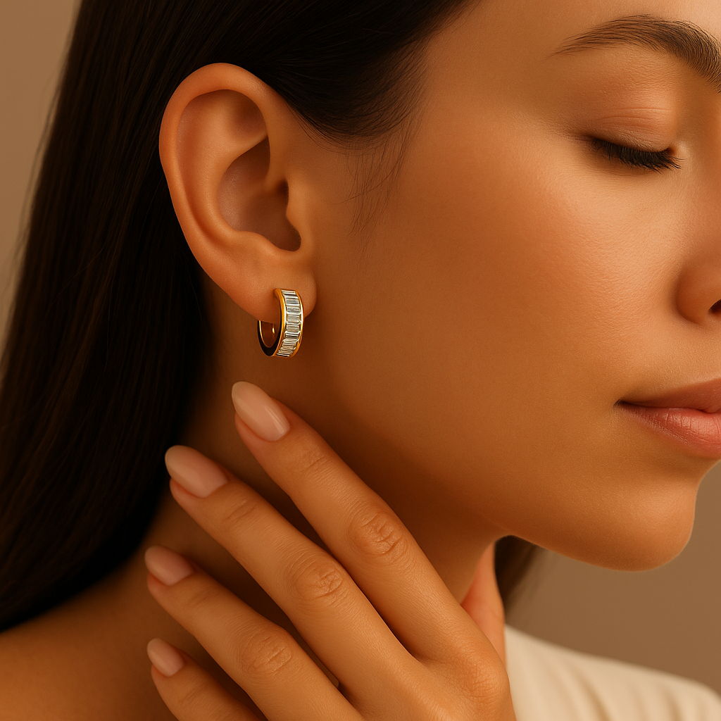 Hermosos aretes con piedras de circón de acero inoxidable, resistente al agua e hipoalergénico