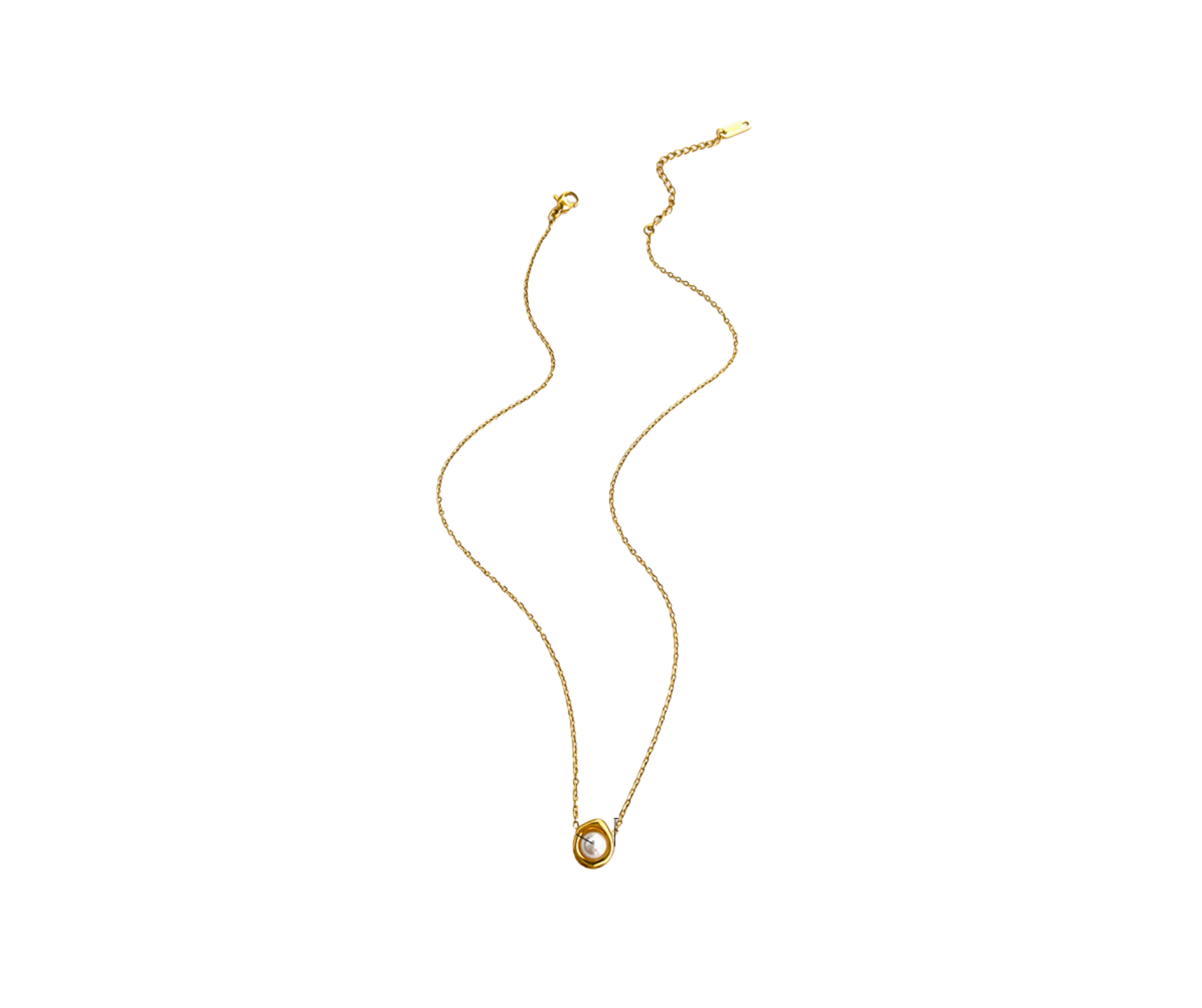 Elegante collar de acero inoxidable con dije de perla, resistente al agua e hipoalergénico