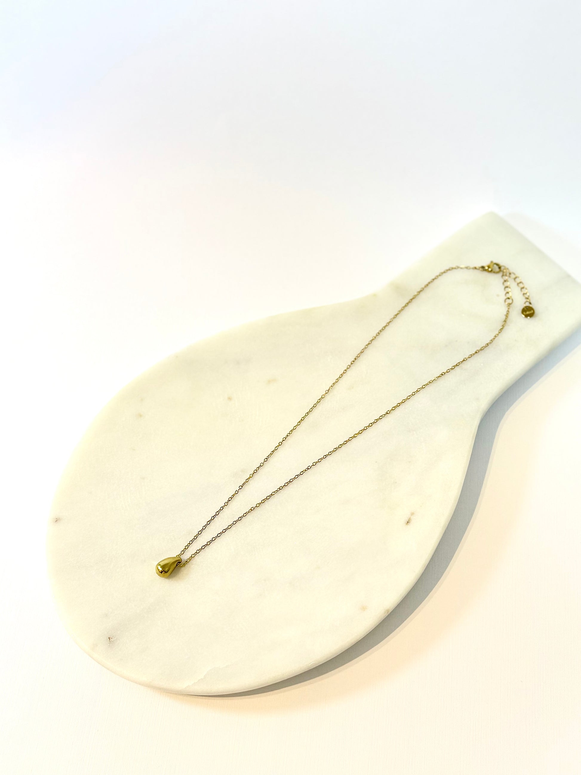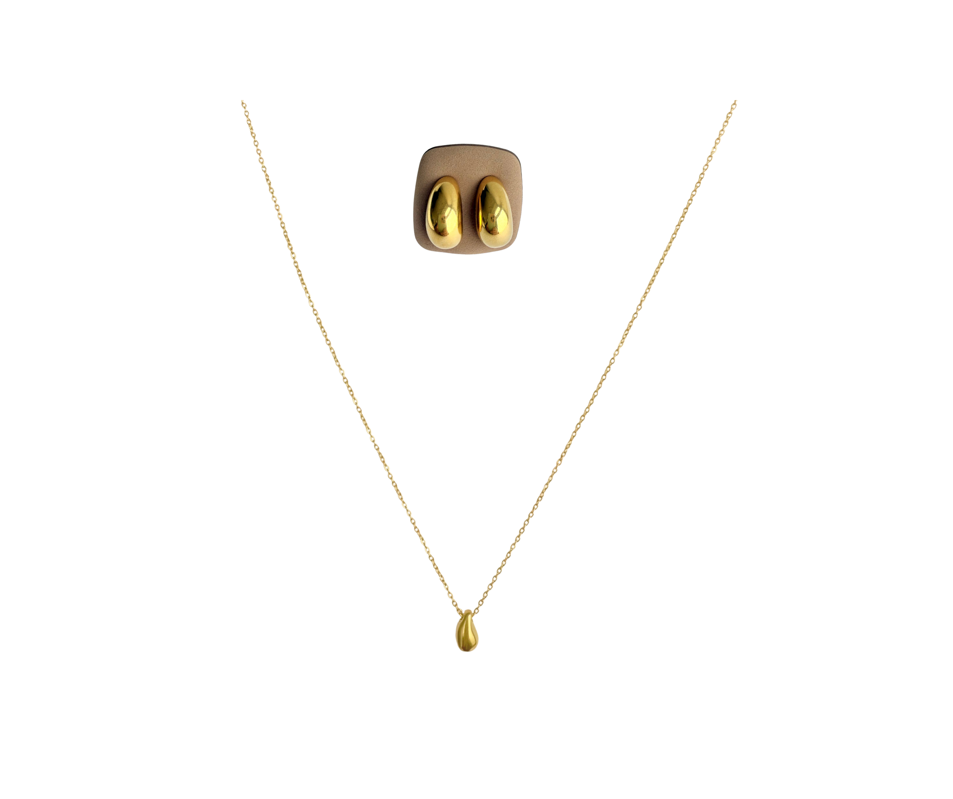 Delicado set de collar y aretes dorados en forma de gota, resistentes al agua e hipoalergenicos