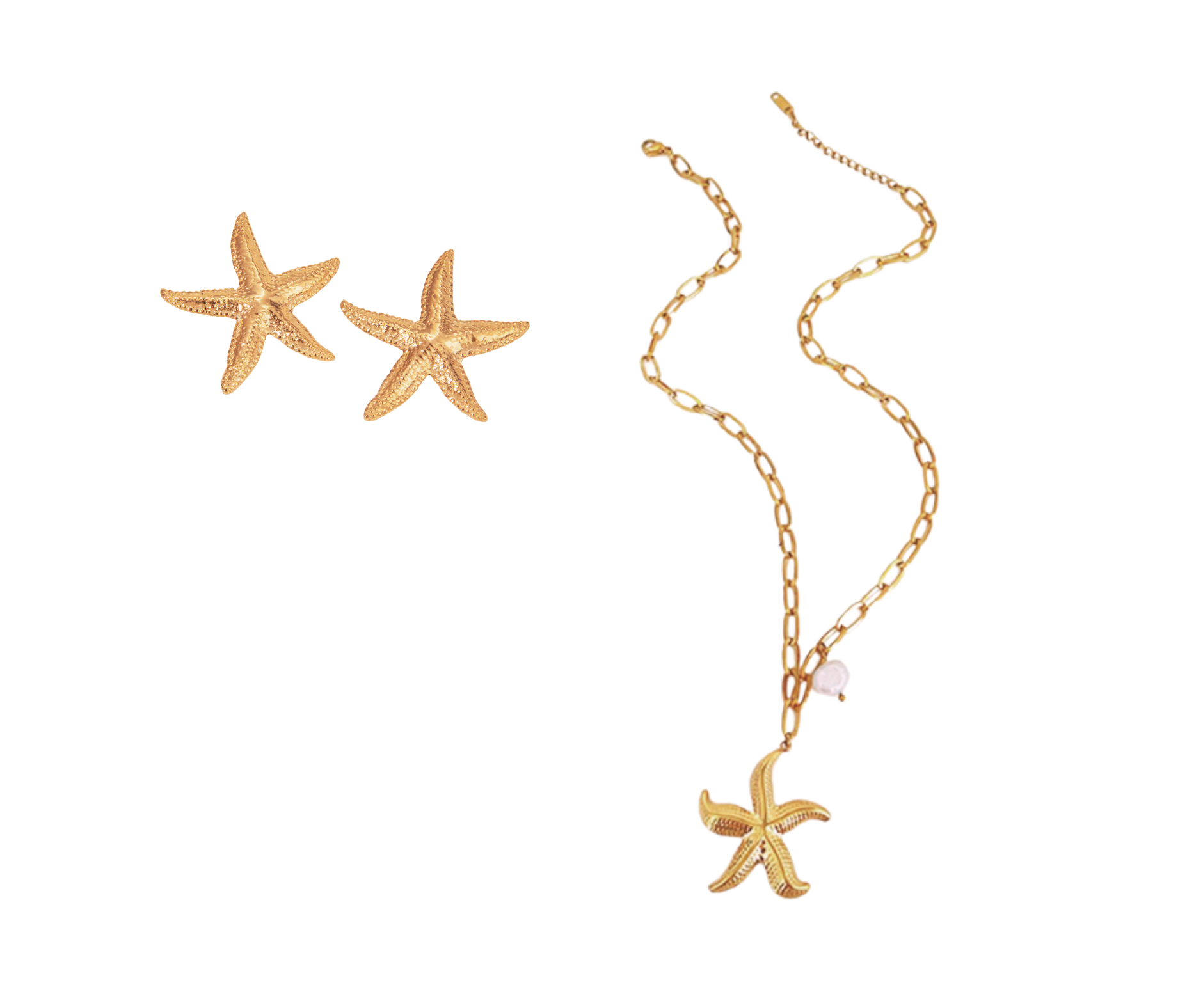 Hermoso set de collar y aretes en forma de estrella de mar, resistentes al agua e hipoalergénico