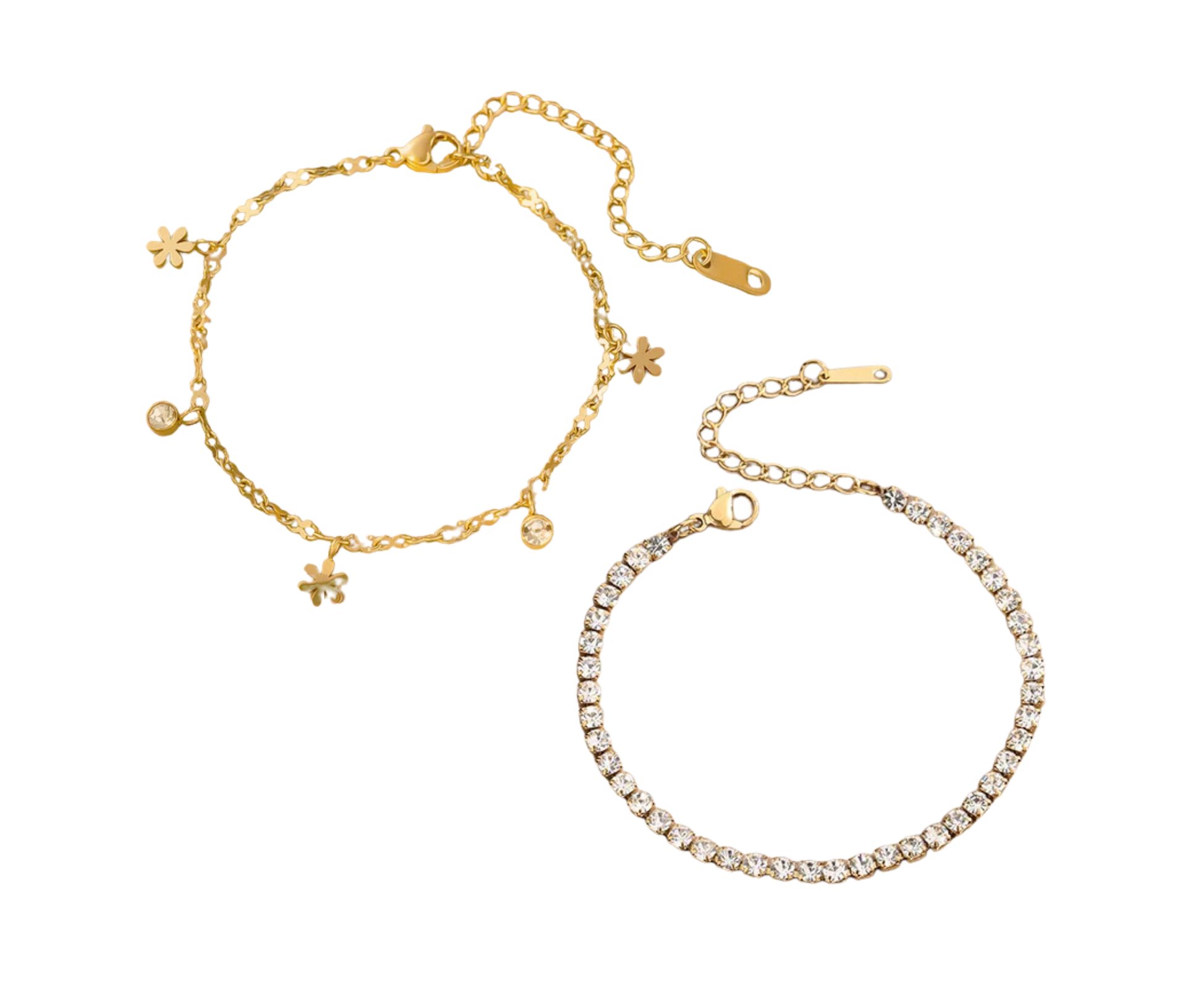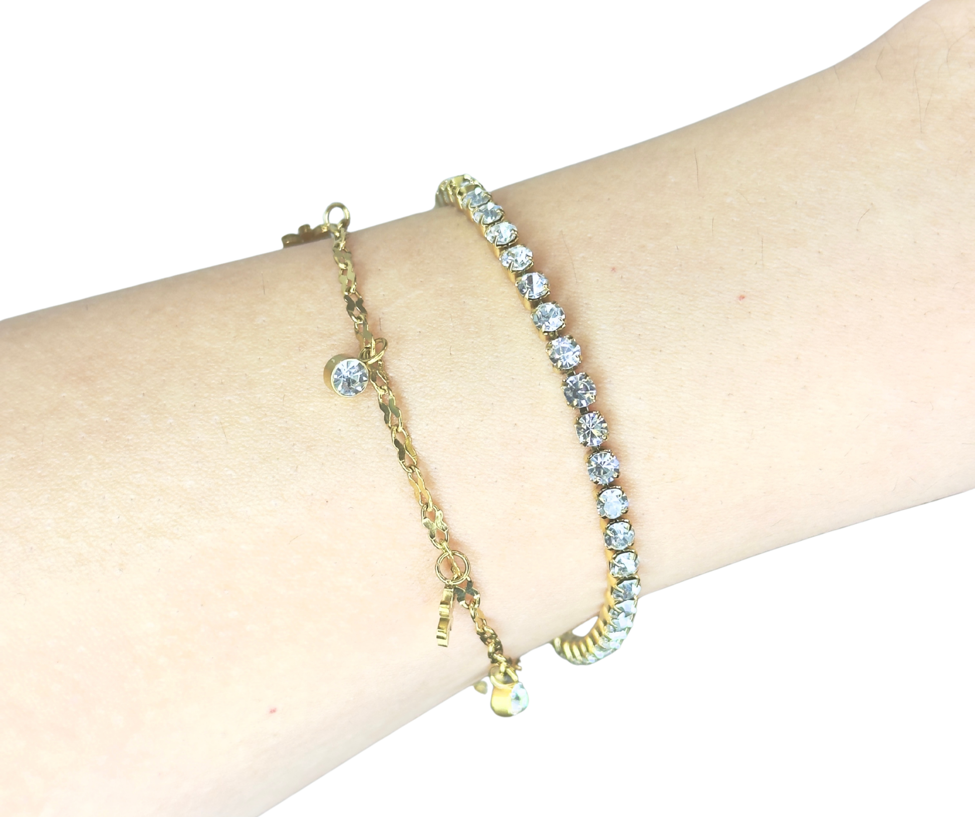 Delicado set de 2 pulseras de titanio: pulsera baguette + pulsera cuentas, resistente al agua e hipoalergénico